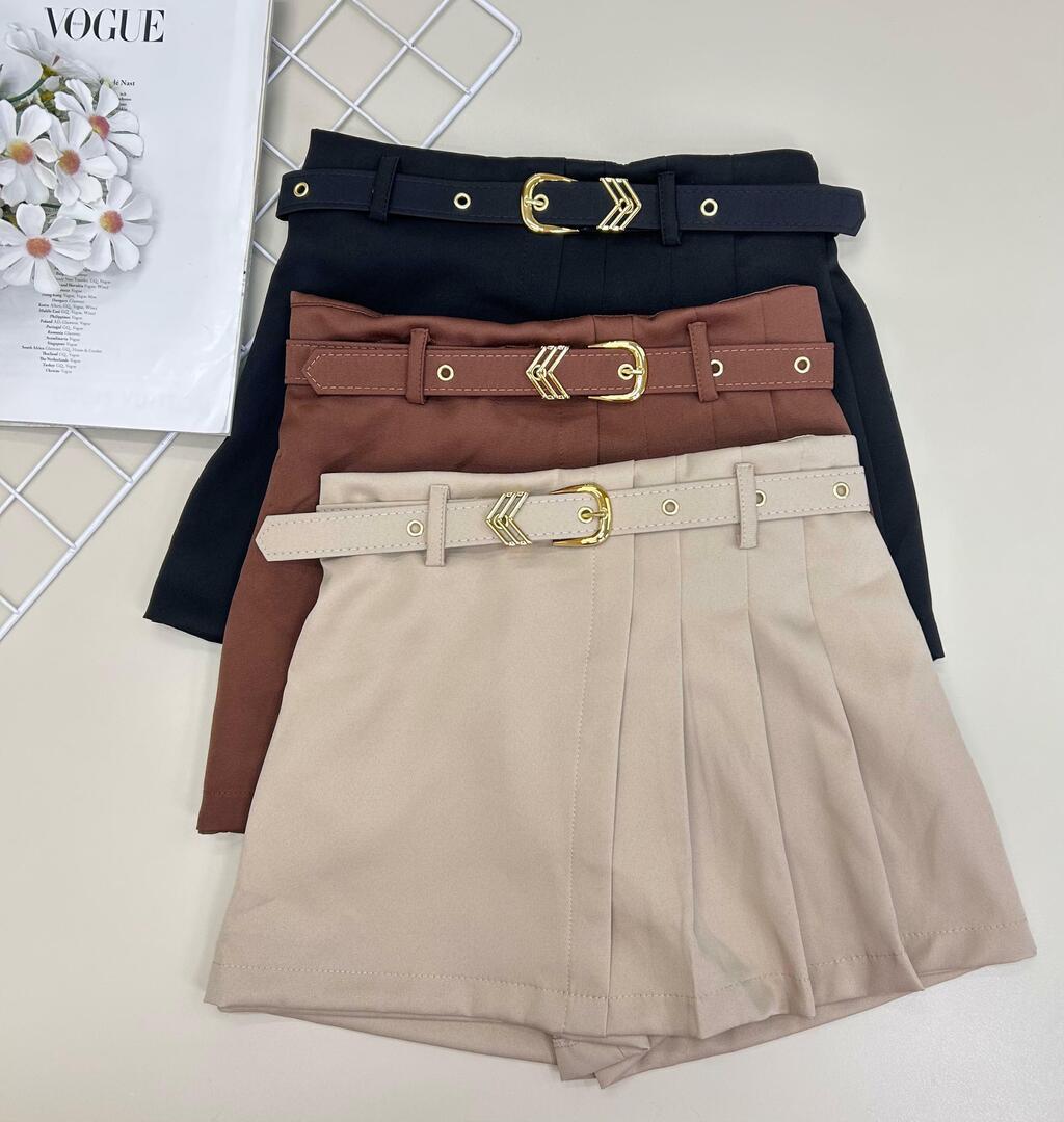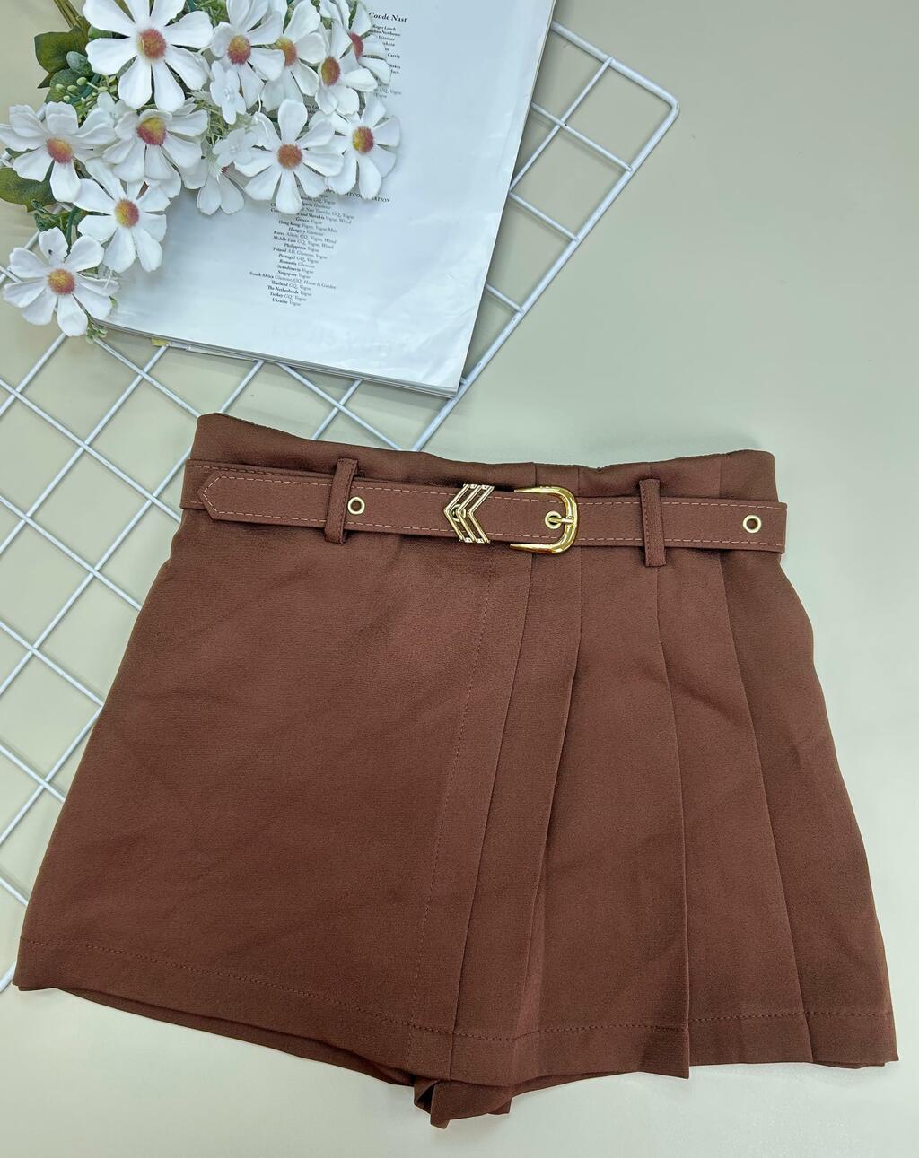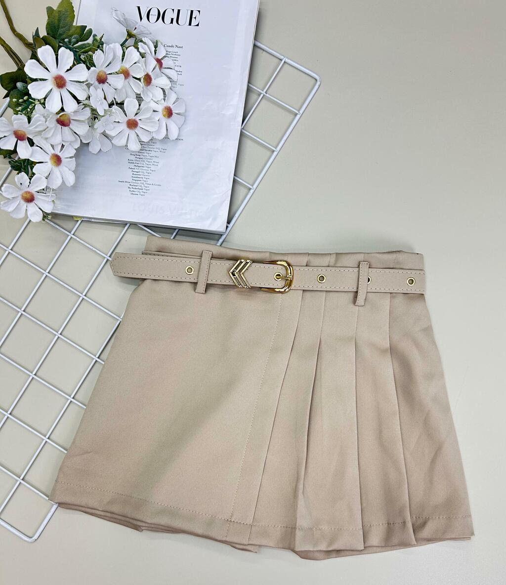 Short Saia Juvenil plissado em alfaiataria, nas cores lindas, e acompanha o cinto para deixar ainda mais charmoso.