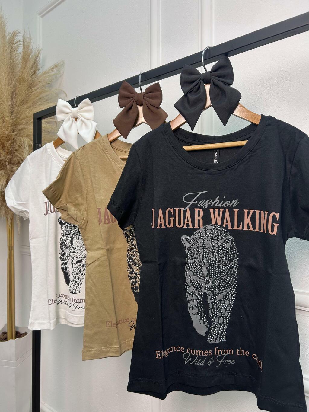 Garanta que seu pequeno esteja na moda com a T-Shirt Juvenil com skin de onça e detalhes de pedraria. Uma peça que une estilo e conforto, perfeita para brilhar em qualquer momento!